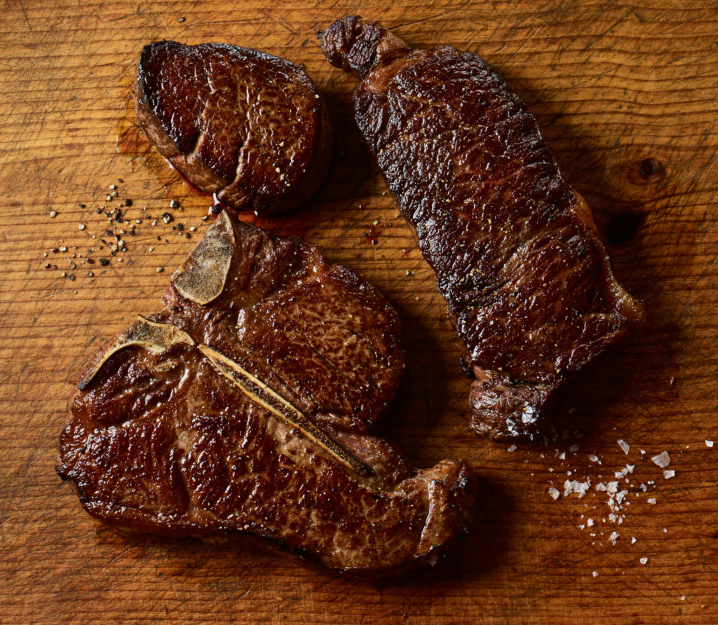 In order to dry age beef, it has to be on the bone and have sufficient fat cover. Another process that is used for aging beef is known as wet aging, in which the primals are vacuum-sealed and left for several weeks. While wet aging enhances tenderness because of the action of the natural enzymes, it doesn’t do the same job to maximize the intense flavor that only dry aging can impart.
