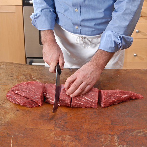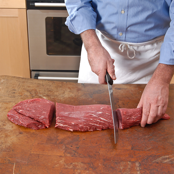 You can now leave the Chateaubriand (center-cut roast) as is or slice it into filet mignon steaks (as shown here).