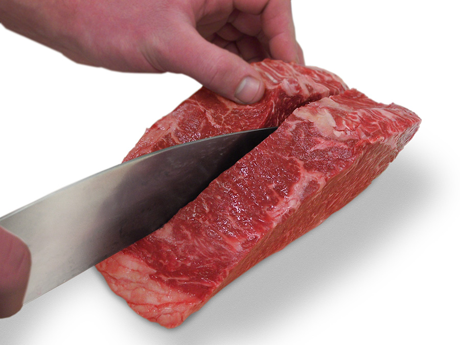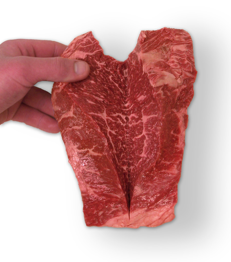 3. “Open” the steak, pressing each side flat, using the edge of meat and fat as a hinge.