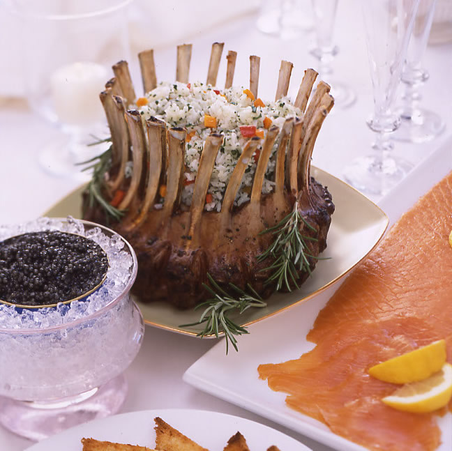 - And if you want a real showstopper, opt for a crown roast of lamb, pork, or veal. In this form, 2 or 3 racks are sewn together end to end and formed into a circle. Once assembled, it truly resembles a magnificent crown with the center filled with your favorite stuffing.